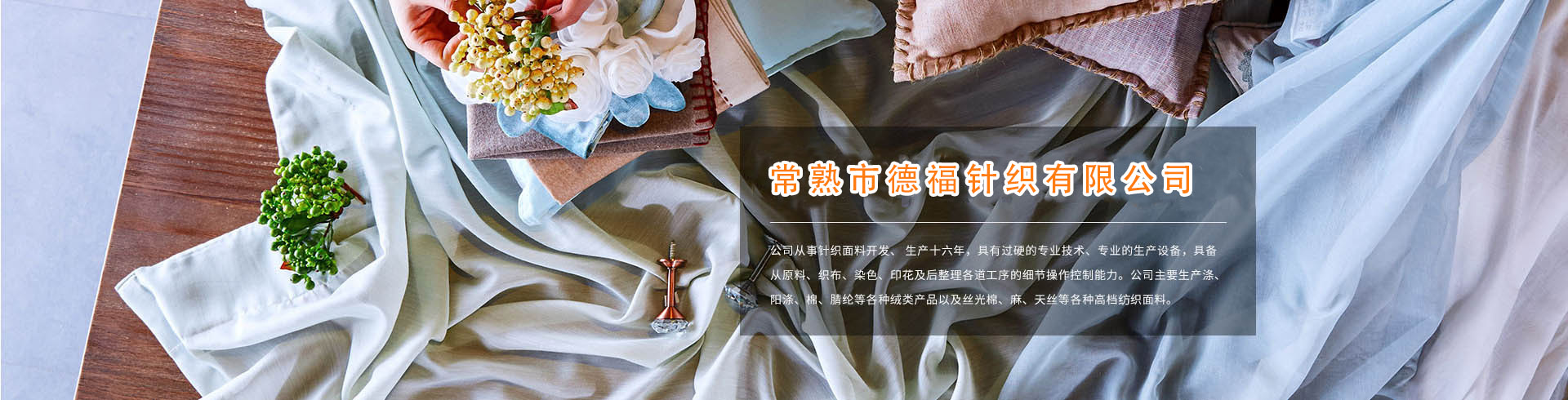 常熟市德福針織有限公司致力于服裝、家居面料的開發(fā)和應(yīng)用,追求時(shí)尚簡約、舒適優(yōu)雅及健康的生活理念,滿足人們對高品質(zhì)生活的需求。